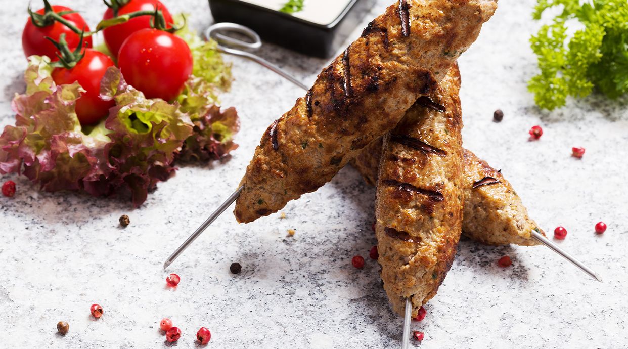 Brocheta de carne picada de ternera especiada