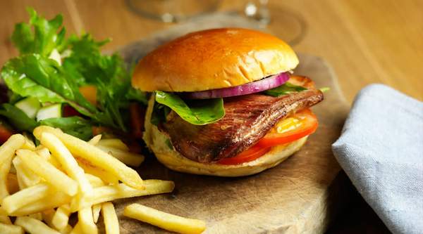 Salsa César, lechuga, cebolla frita, pollo, jamón York,queso,nueces y avellanas