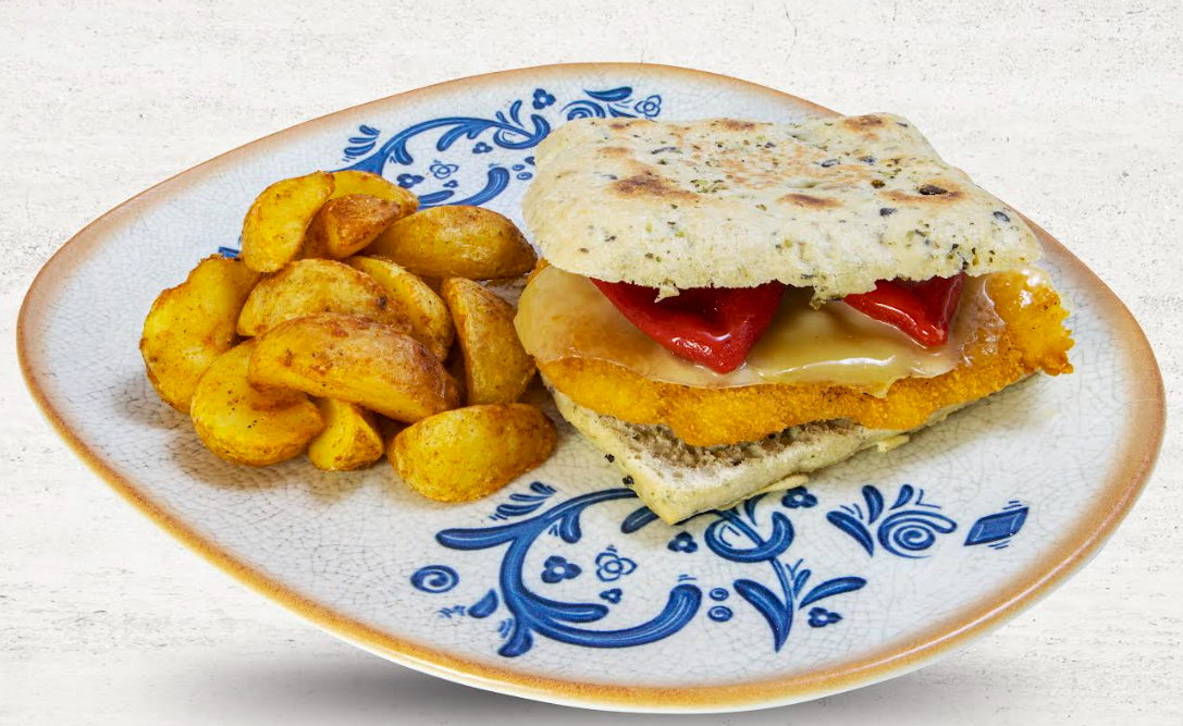 Pollo a la plancha, lechuga, tomate, cebolla, piquillo, york y queso.