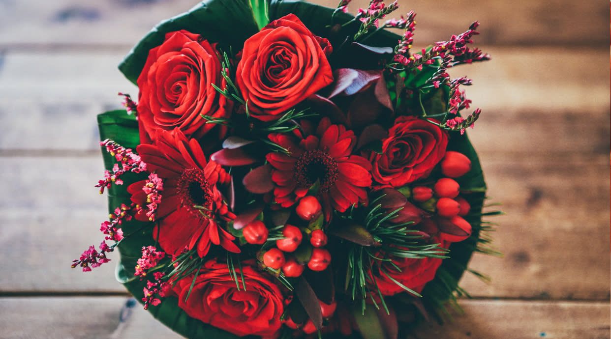 Cesta De Flores Gerberas Y Alstromelia. Tonos Rojos.