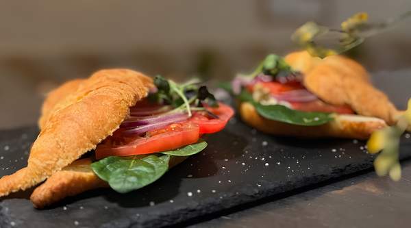 Con tomate seco, nueces, “pollo” y salsa tártara