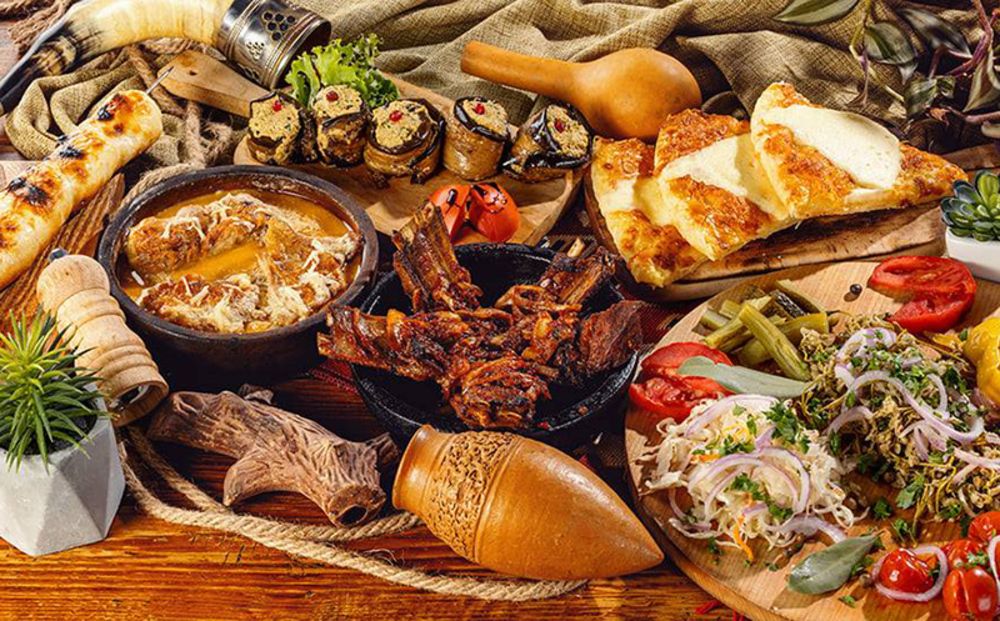 ღორის კანჭი 2.500კგ, შემწვარი სოსისები,მწნილის ასორტი, კარტოფილი მექსიკურად, სოუსები