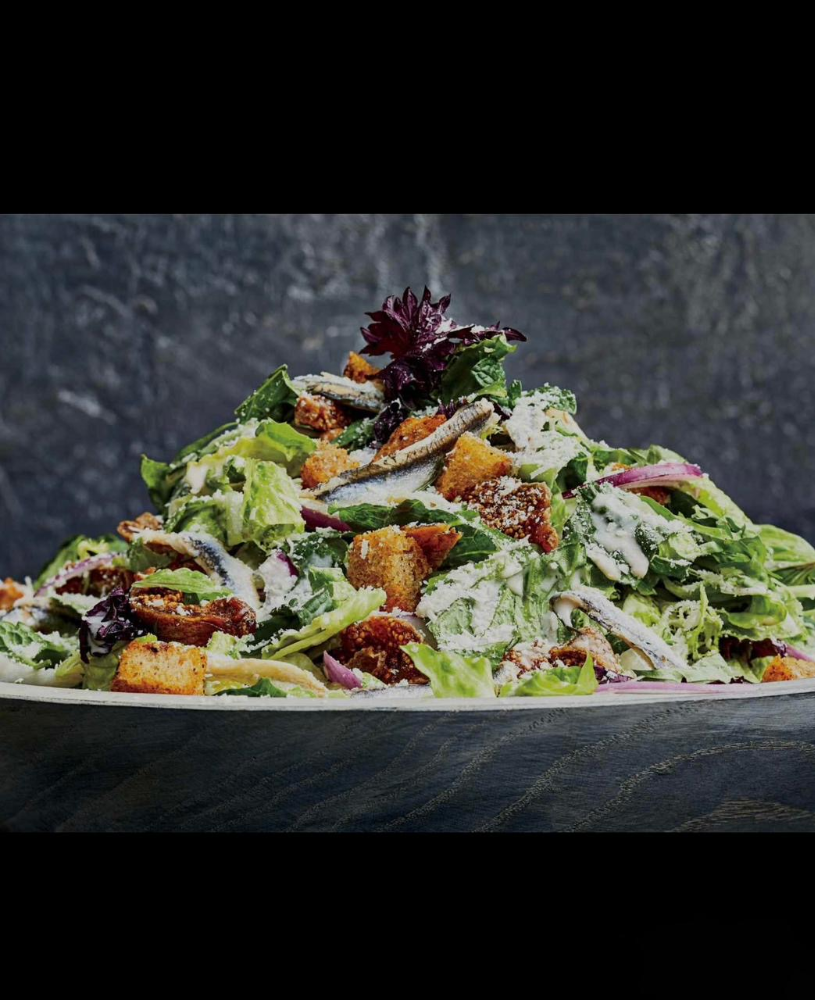 სალათის ფოთოლი, ქათმის ფილე, პარმეზანი, მაიონეზი, პომიდორი, მდოგვი დიჟონის, კვერცხის გული, მარილ, შავი პილპილი, ლიმონის წვენი, სუხარი (500 გრ)