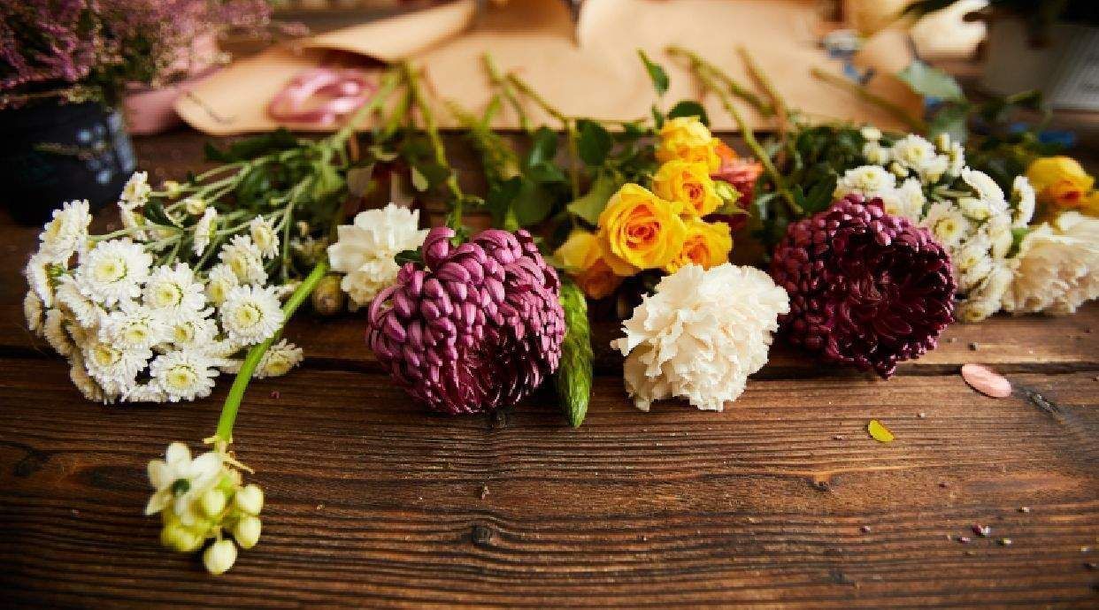 ჰოლანდიური ქრიზანთემები და სპრეი ვარდების თაიგული