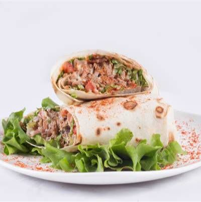ბრტყელი პური, ქათმის ხორცი, მწარე წიწაკა, ხახვი, კიტრი, პომიდორი, კეტჩუპი, მაიონეზი
