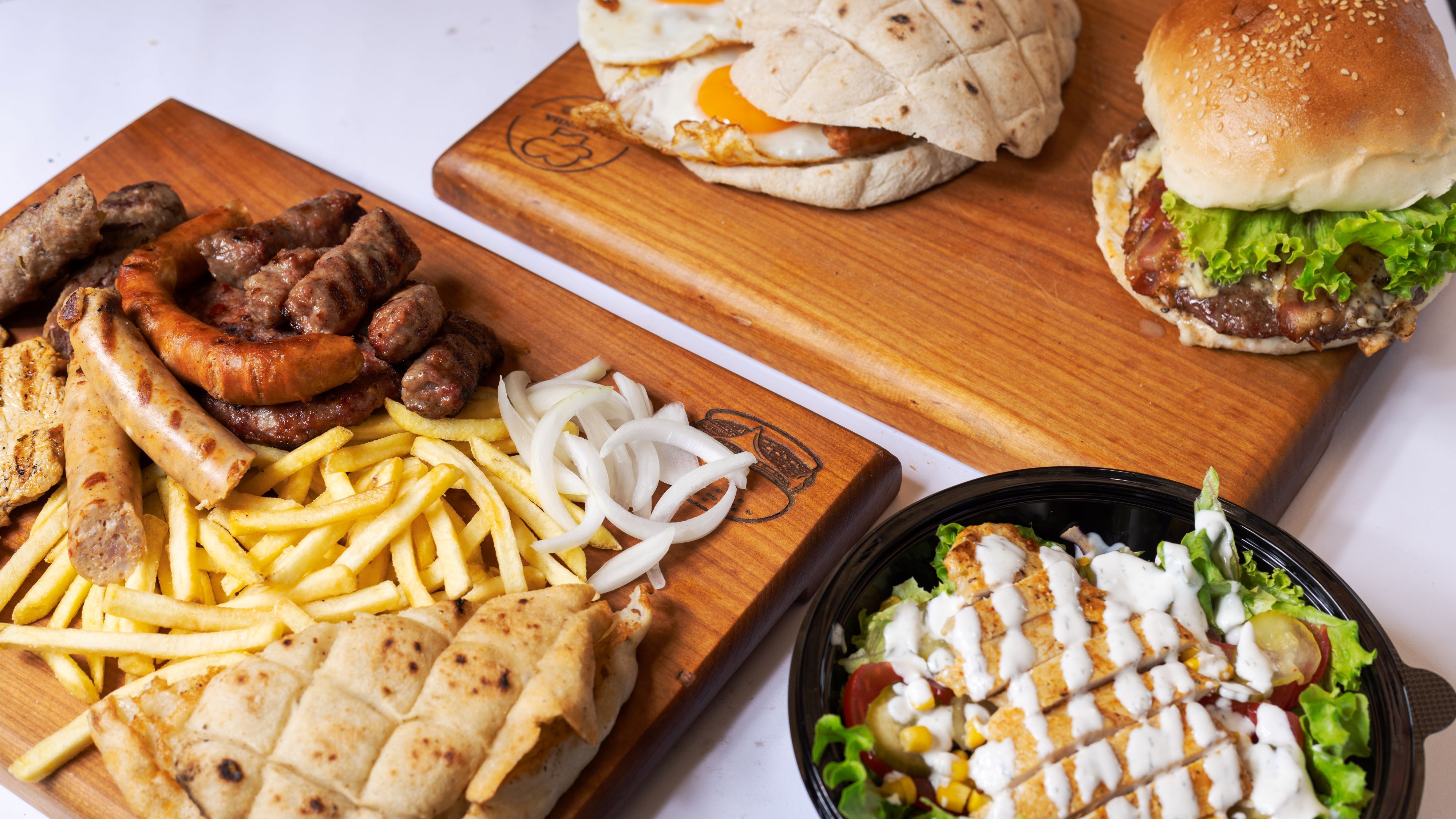 Pomfrit, ćevapi, šiš ćevap, pileća prsa, kobasice, luk
