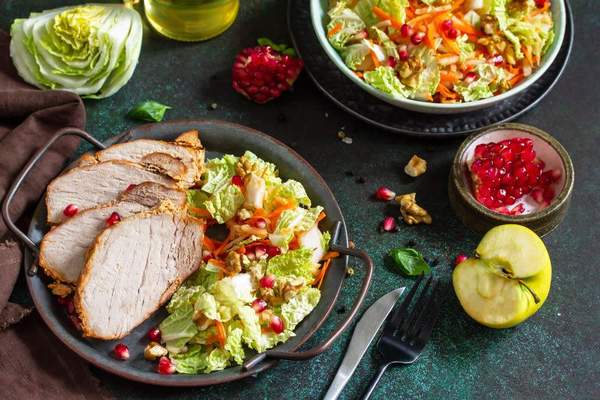 Rukola, zelena salata, mrkva, feta sir, cherry rajčica, piletina, panceta