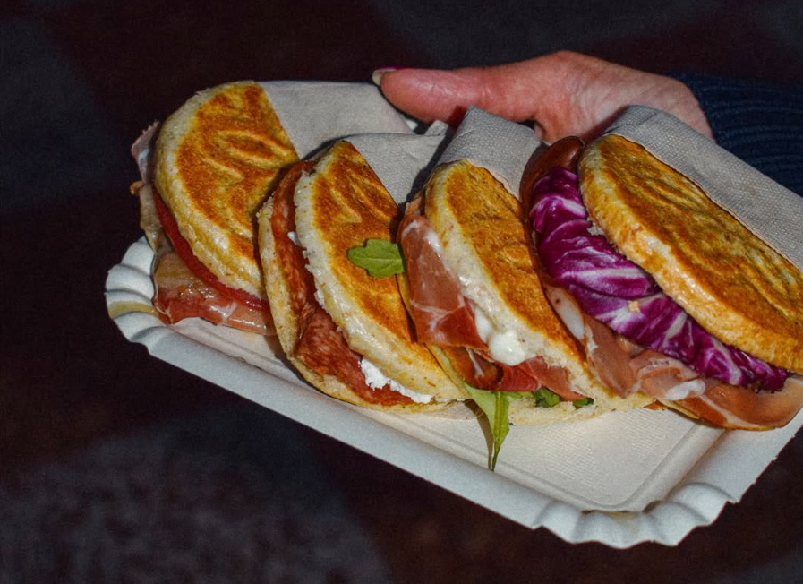 menù con 4 Tigelle vegetariane : Caprese, Frettolosa, Unibo e Margherita
