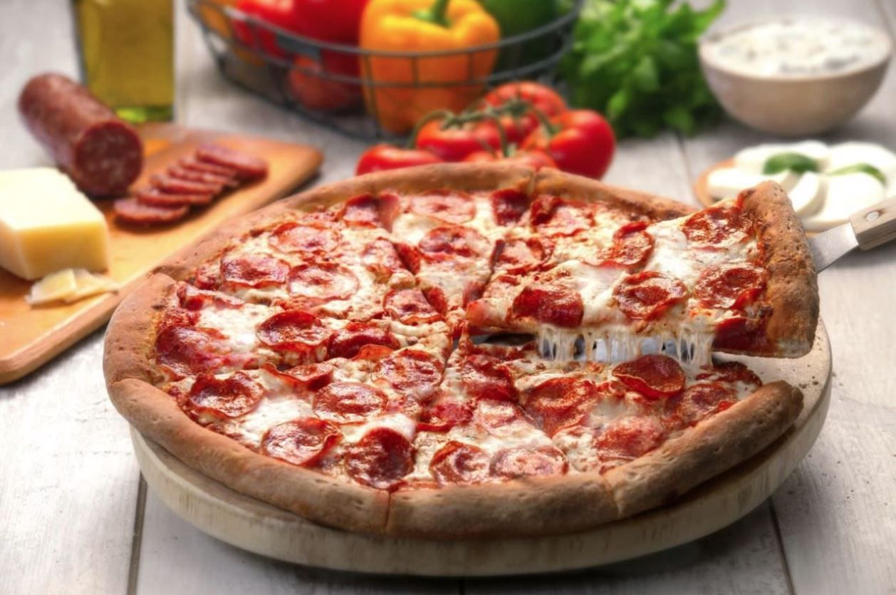 Pomodoro, mozzarella, carciofi, funghi, cotto, olive