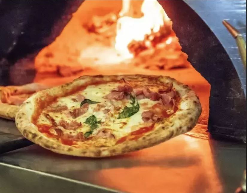 PIZZA FRITTA CON: RICOTTA,PEPE, MOZZARELLA, PROSCIUTTO COTTO, POMODORO, GRANA GRATTUGIATO, BASILICO