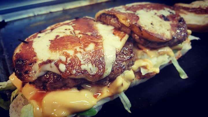 Hamburger, doppio cheddar, bacon fritto e uova