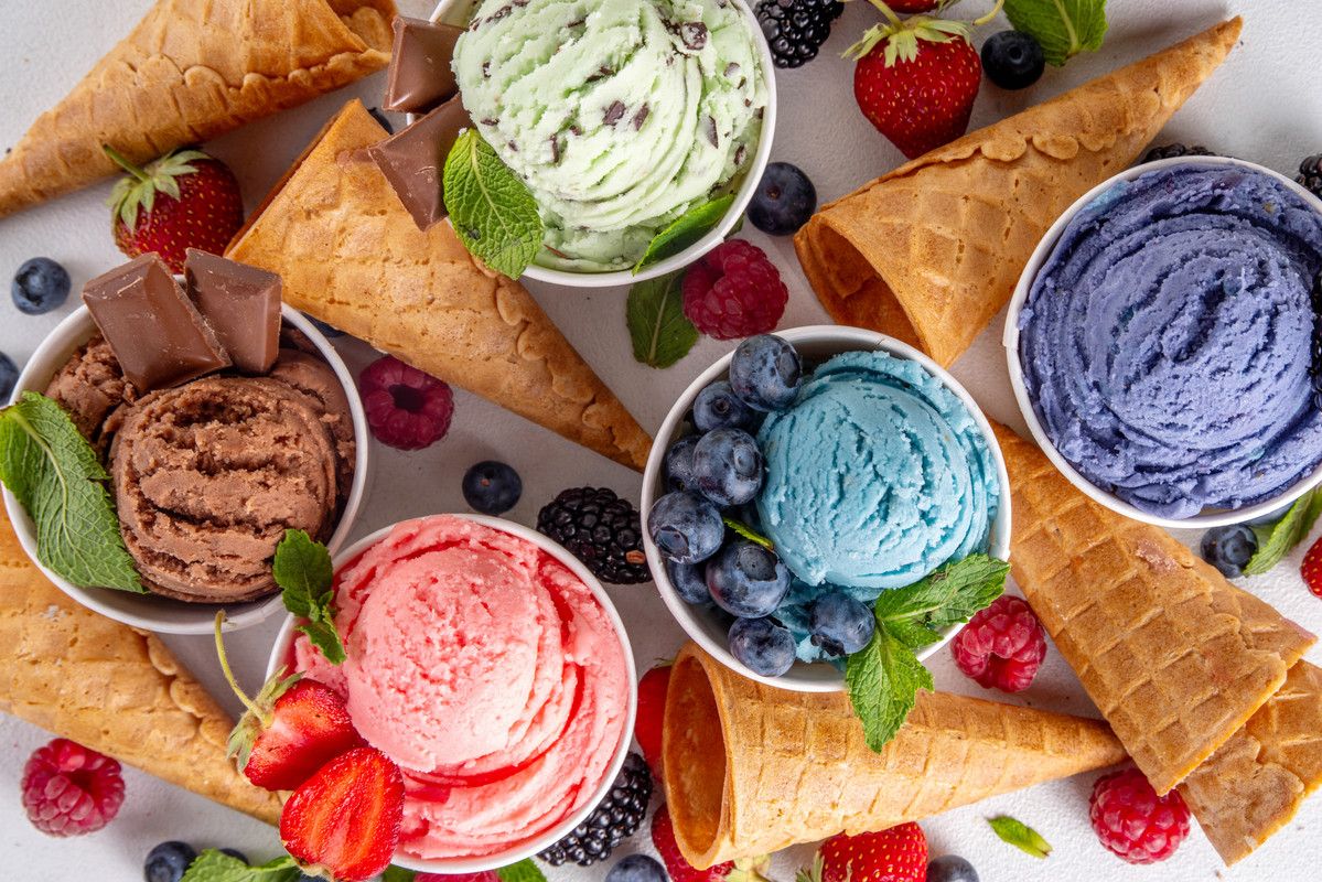 Gelato pistacchio, gelato mandorla e variegatura all'arancia