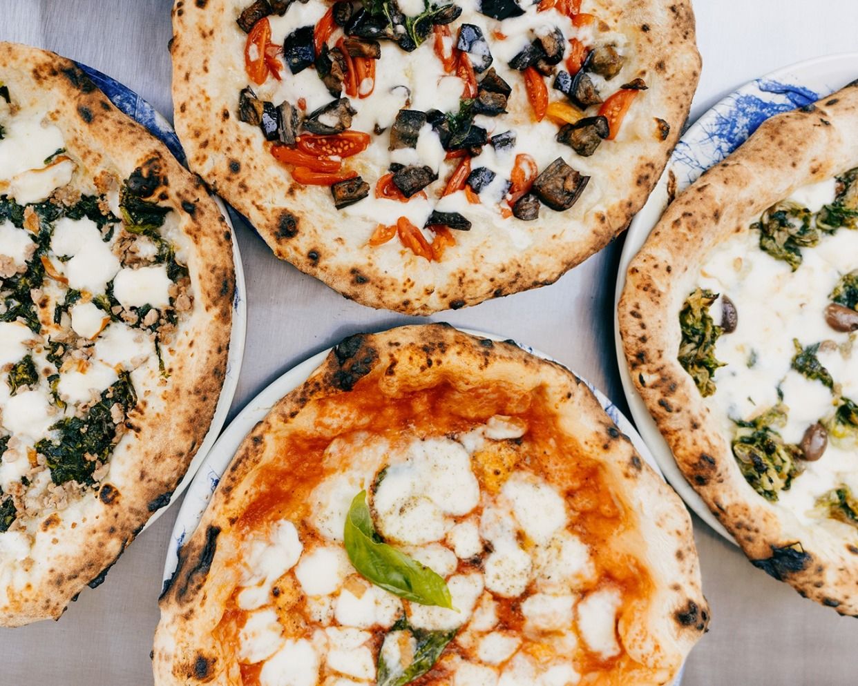 margherita divisa in tre spicchi con mozzarella fiordilatte, provola e mozzarella di bufala