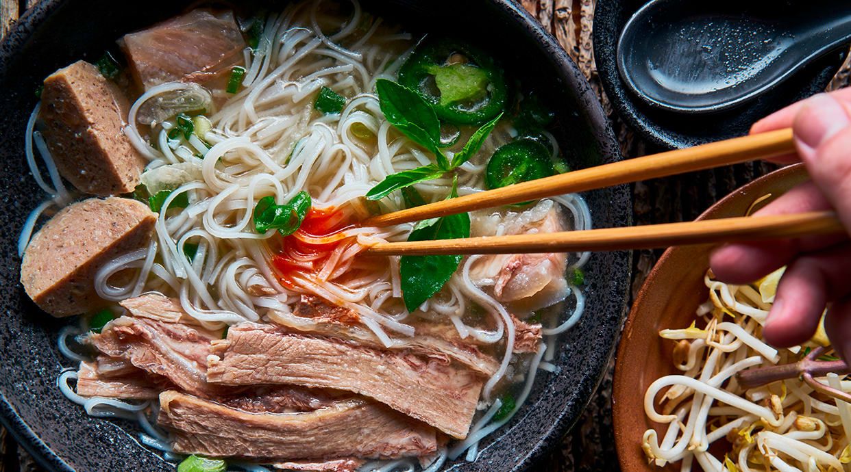 La mian con anatra e verdure in brodo