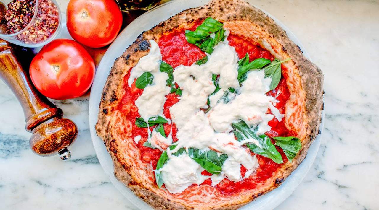 Pomodoro, fior di latte, filetti di alici, frutto del cappero, origano e basilico