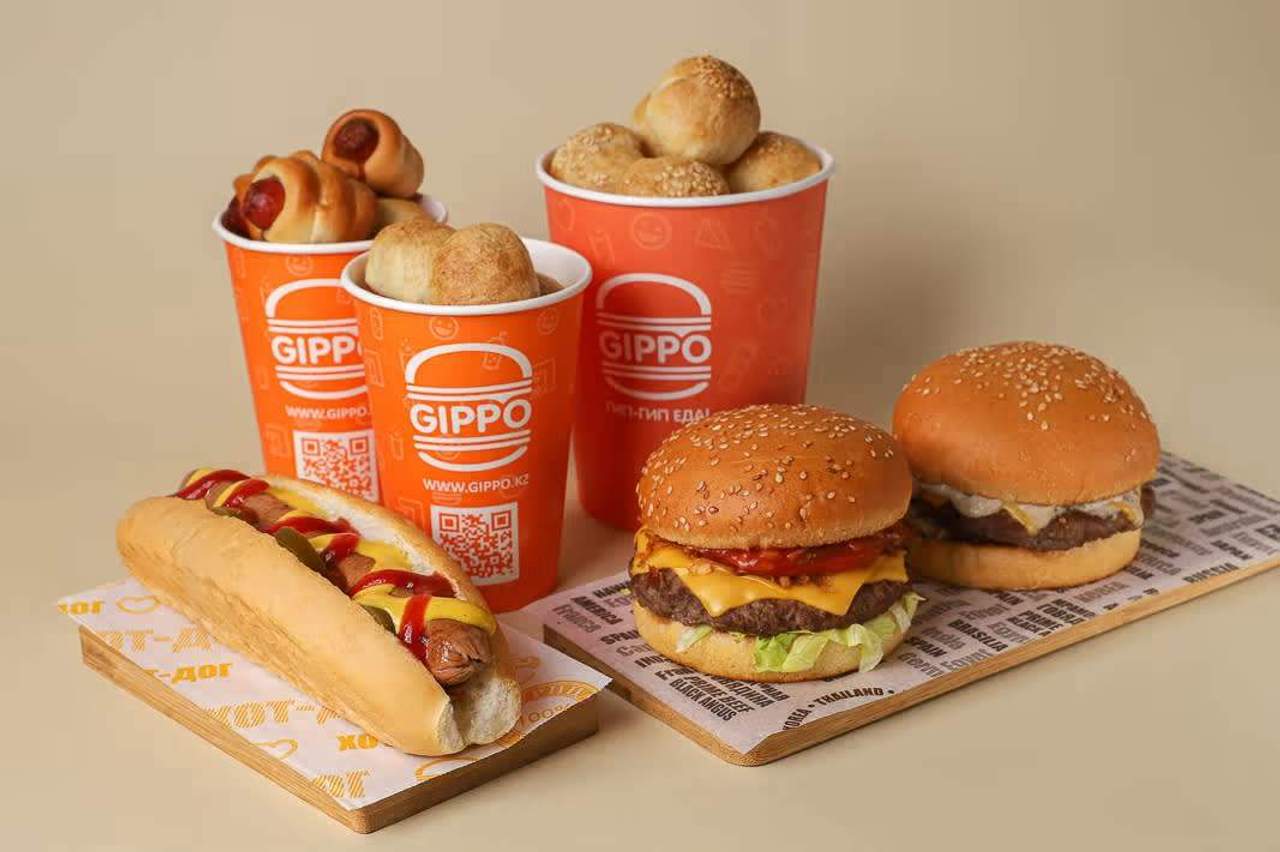 Пышная булочка, специальный соус Gippo, сочный и хрустящий салат «Айсберг», две нежные куриные котлеты, два сливочных ломтика сыра и маринованные огурчики.
