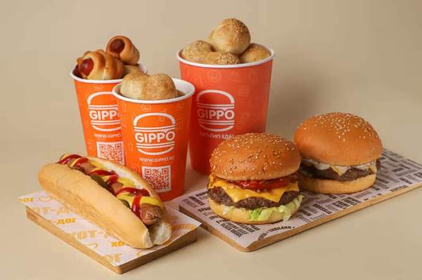 Пышная булочка, специальный соус Gippo, сочный и хрустящий салат «Айсберг», нежная куриная котлета, сливочный ломтик сыра и маринованные огурчики.