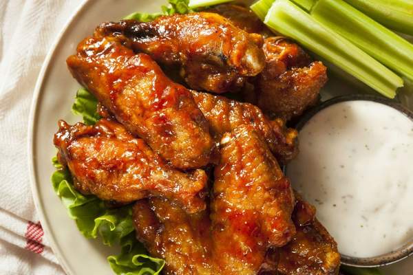 Острые куриные крылышки в панировке, острые специи +2 соуса