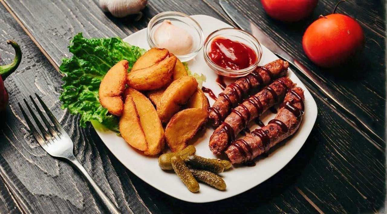 - Картофельные дольки - Сырные палочки - Наггетсы - Крылья острые - Жареные пельмени