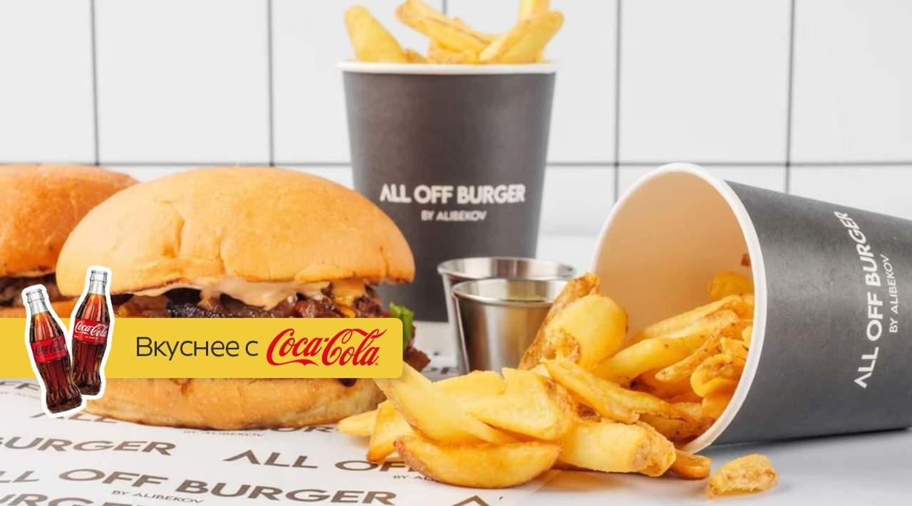 Кокчикаго бургер, картофель фри, кетчуп, Coca-Cola