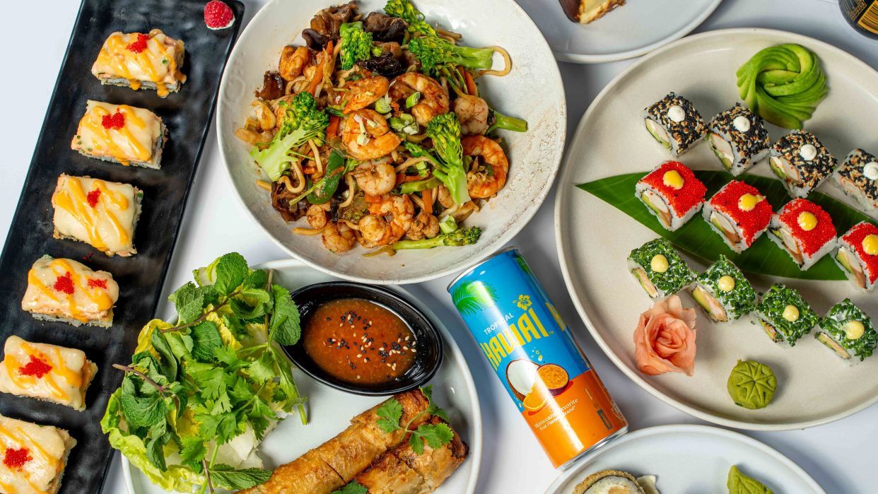 sushi roll, brochettes, crevettes, nems, riz cantonnais vegies