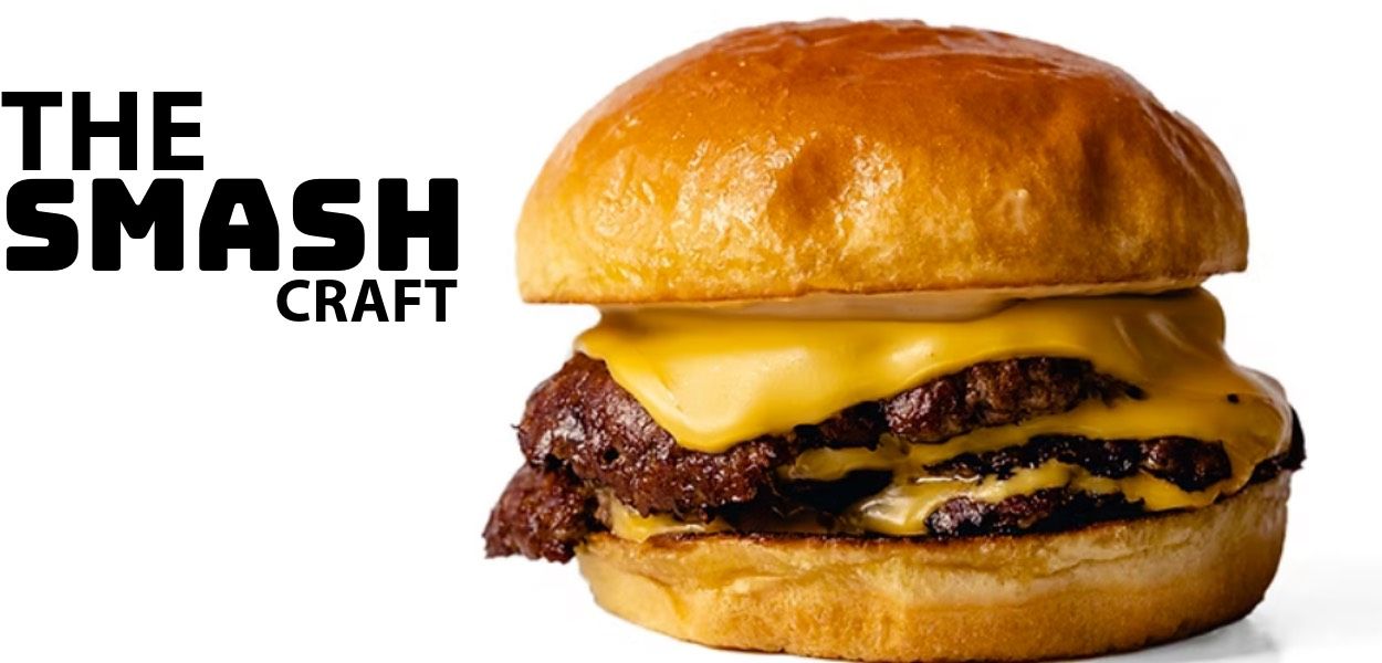 Potato bun, smashed beef 100g, American cheese, mozzarella, champignon, oignon frit sauce smash