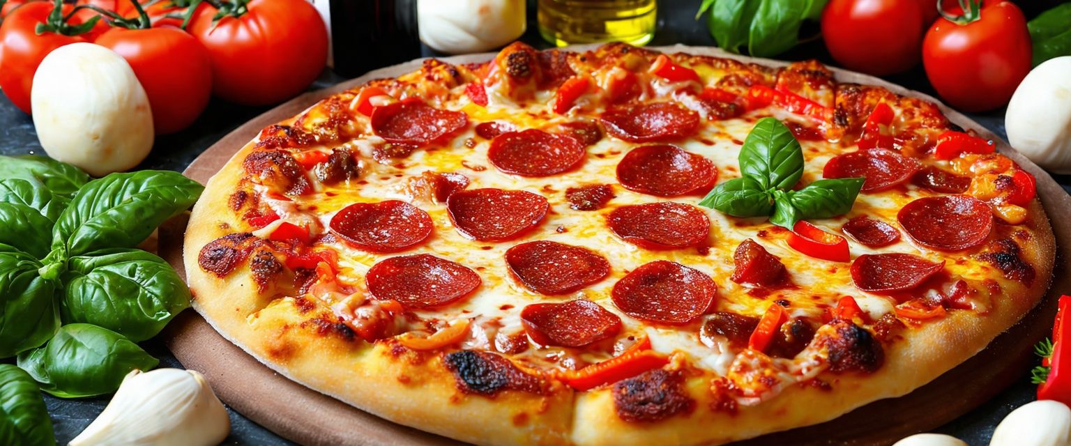 Sauce tomate, poulet, viande hachée, fruits de mer, végétarienne, fromage, origan
