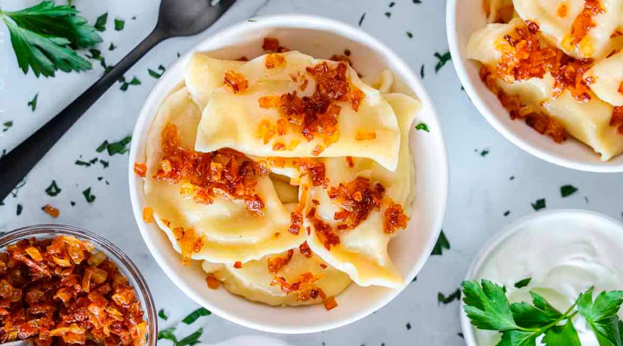 Pierogi ruskie z boczkiem wędzonym