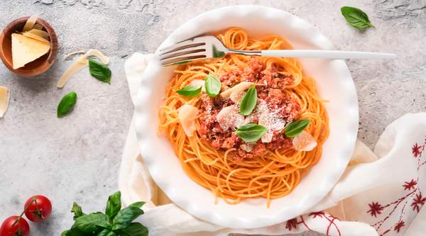 Włoski makaron z sosem bolońskim + tarty ser