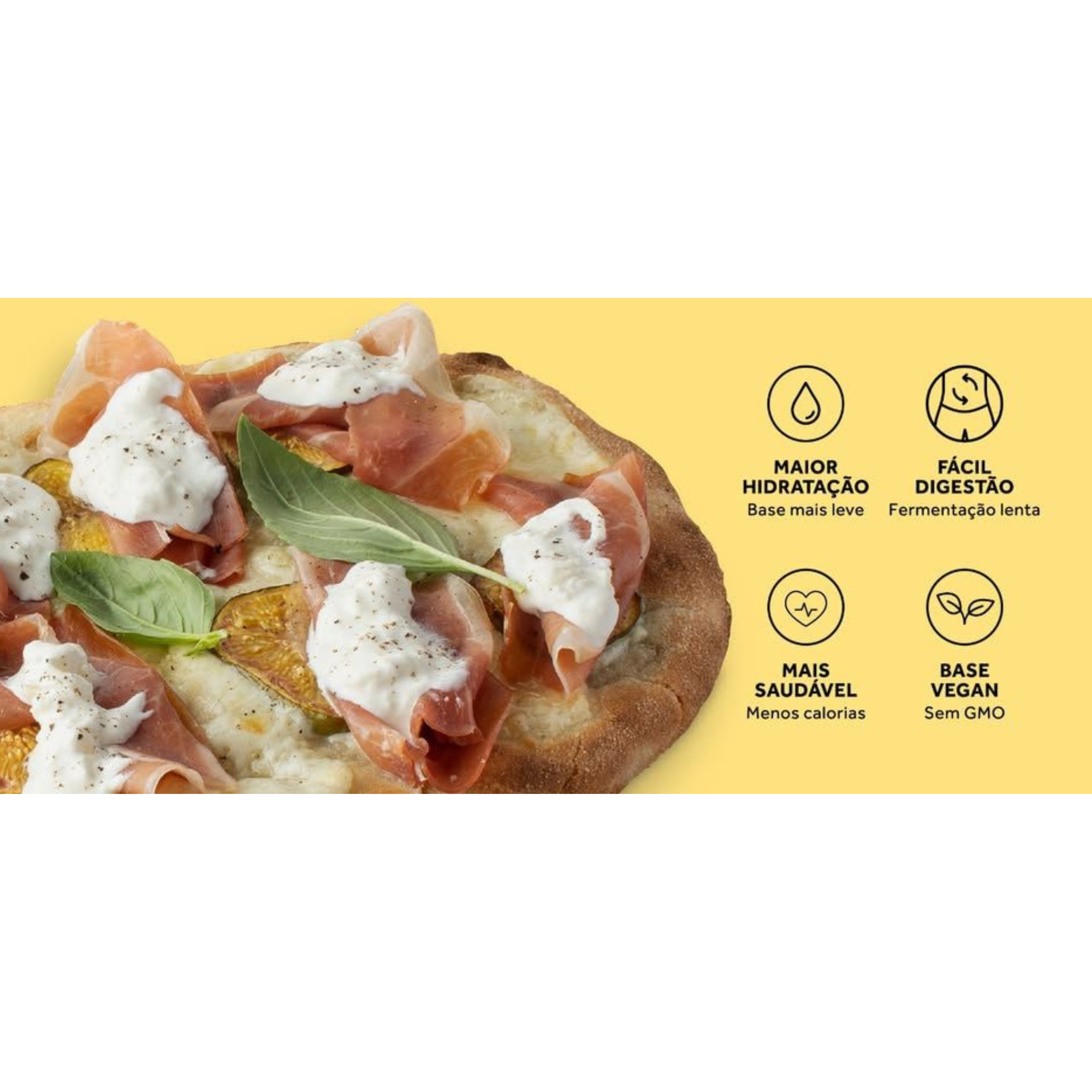 Mozzarella fior di latte, chèvre, pancetta, cebola caramelizada e pimenta preta