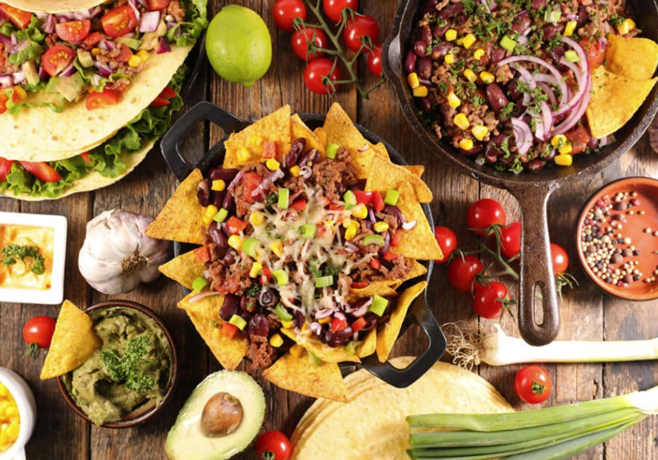 Nachos Carne moída tradicional com pimenta, milho, feijão vermelho, especiarias,