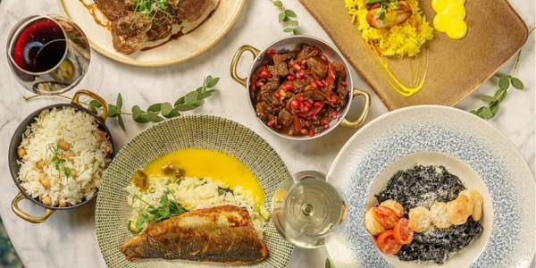Labneh cu piersică, Castravete, Ardei gras, Morcov, Linte, Măsline, Muhamara (Ardei copți, Nucă, Pastă ardei, Roșii uscate, Sare, Cumin), Mutabal (Vinete coapte, Rodie, Pastă susan, Suc de lămâie, Sare) , Hummus cu harissa verde, Hummus clasic (600g)