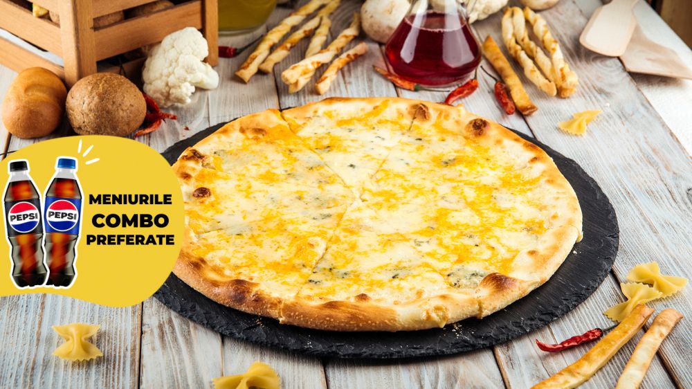 Topping pizza, gorgonzola, cașcaval, parmezan, ulei de măsline