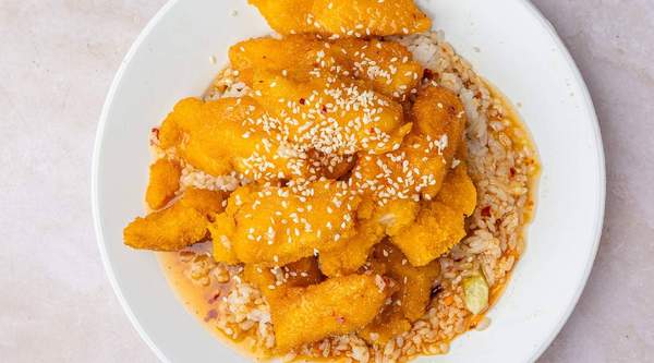 Pomfrit, pirinač sa šampinjonima i slatko ljuti sos