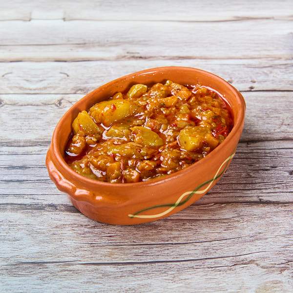 Paprika, luk, paradajz, začini, ljuta paprika, svinjsko meso