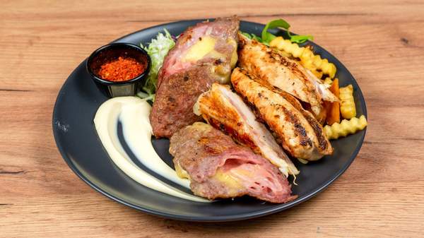 2kg mešanog mesa, 4 lepinje, 2 salate, 200g pomfrita, 4 palačinke
