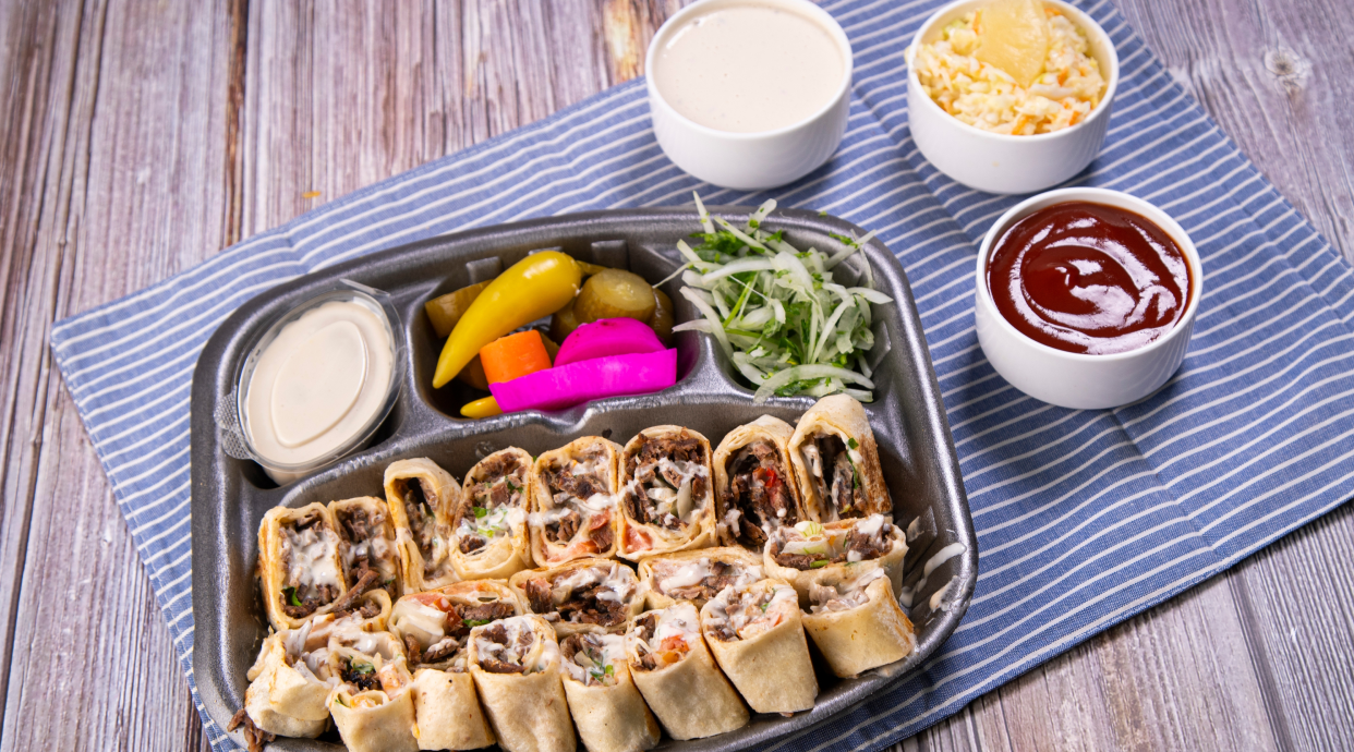 Entrée, frites, mini sandwichs shawarma avec frommage arbi