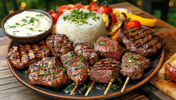 Escalope grillé - pané - chawarma - hrissa - riz - salade mechouta - variété de salades - frites - variante
