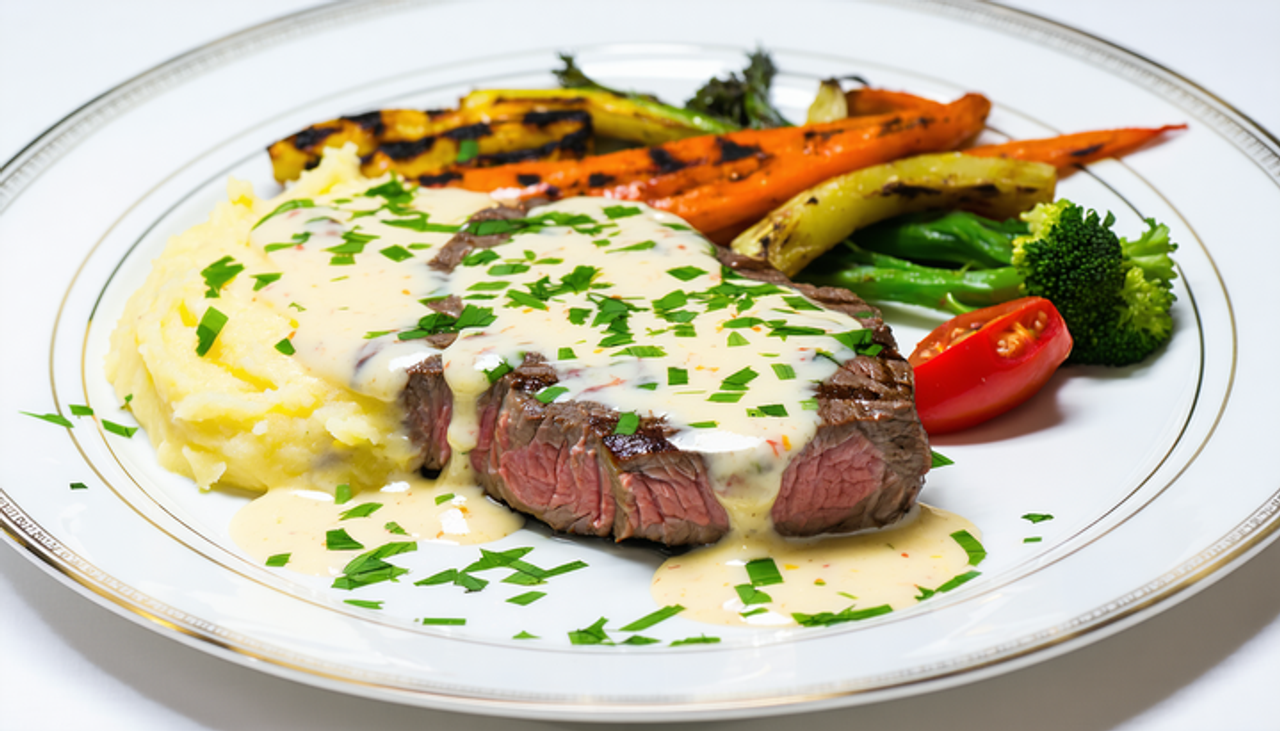 Pain maison, sauce maison, Filet de boeuf, camembert, frites