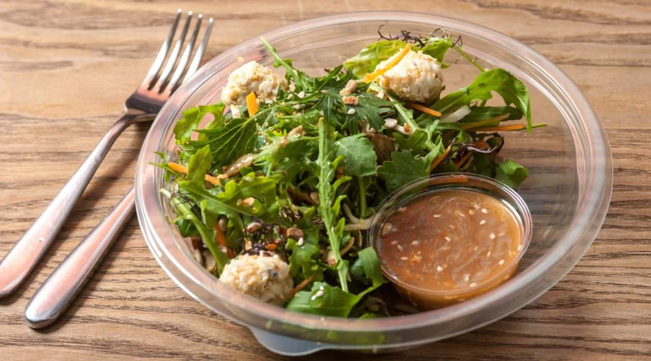 Сир Фета в кунжутній паніровці, морква, кабачок, овочевий соус тонкацу,обсмажене насіння соняшника, гарбуза, мигдаля
