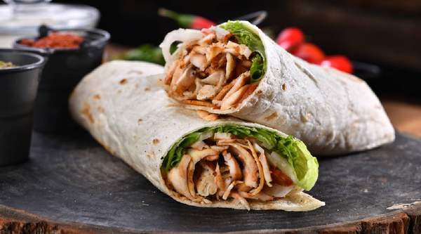 Червена чушка, зелена чушка, царевица, печено месо, чеснов сос, айсебрг, домати, кисели краставички, чеснов сос, малко пикантно