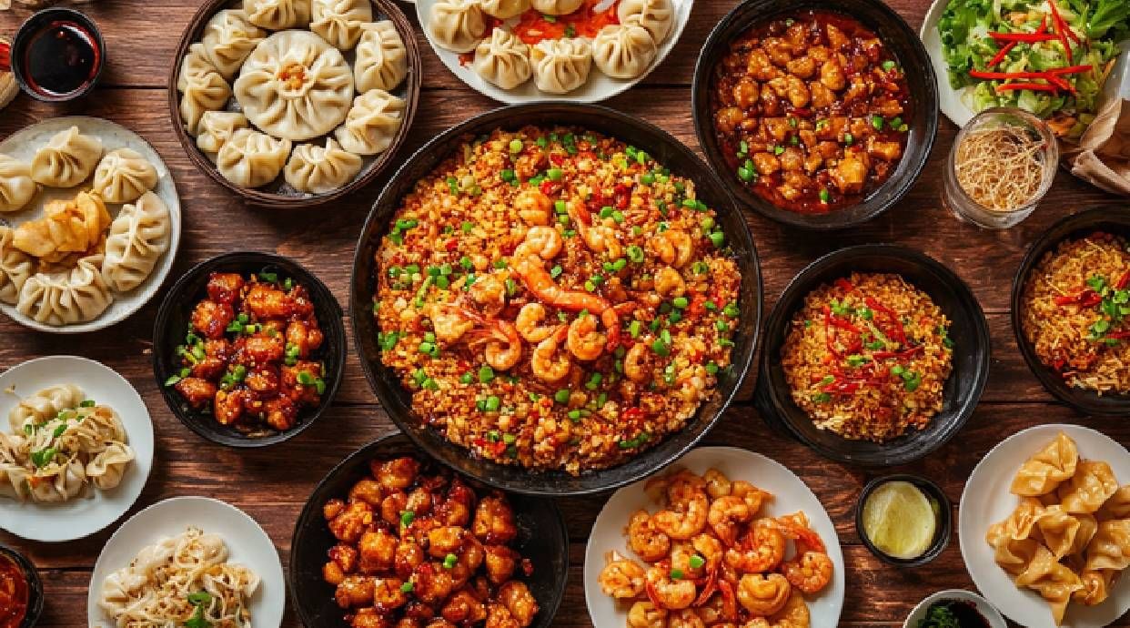 Пържен ориз с пилешко, телешко и свинско (700г)