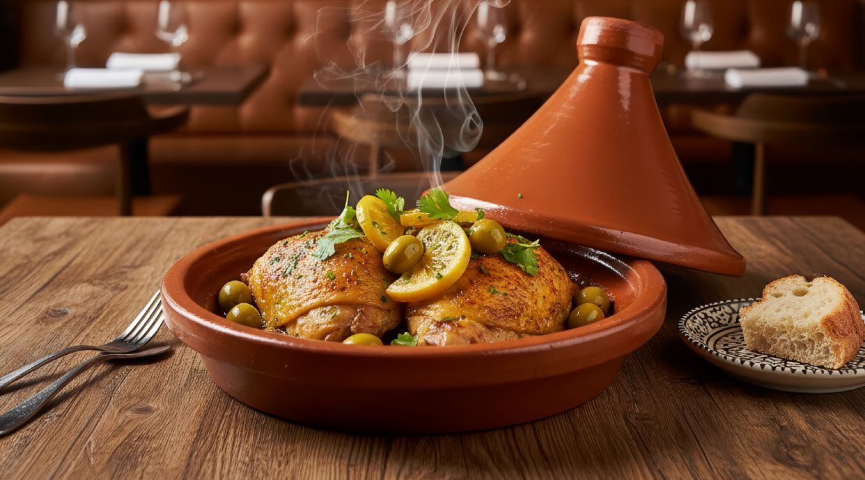 Tajin de pollo con aceitunas y limón confitado