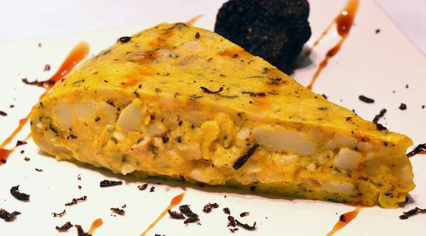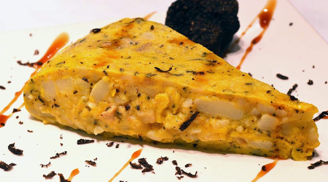 Pide tu Trozo de Tortilla recién gratinada rellena de beicon y Setas! le dan una jugosidad única