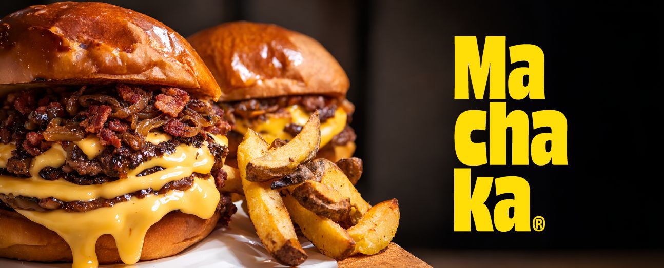 Pan de patata con doble smash, american cheese, bacon y salsa Big Machaka. Inspirada en New York.