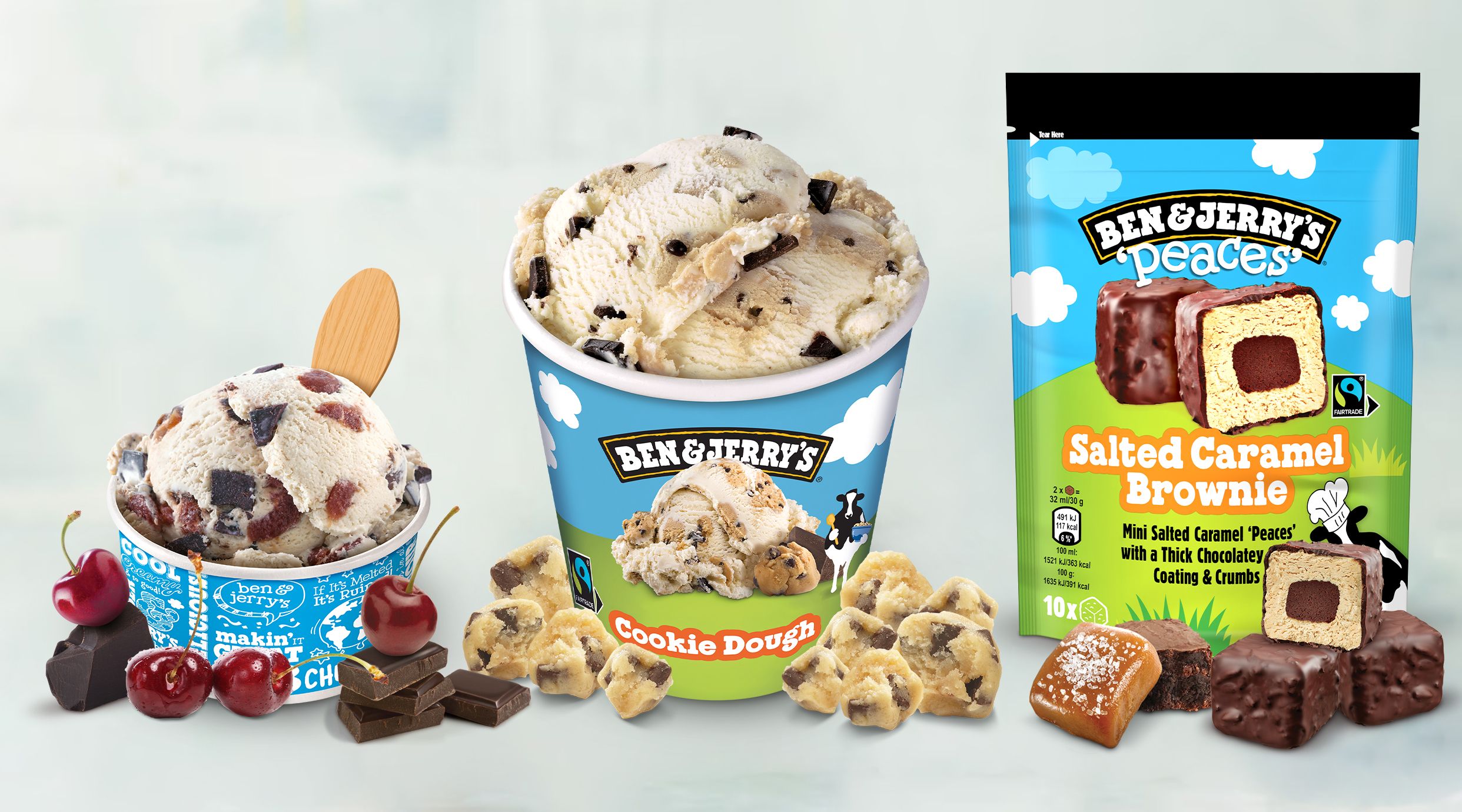 Combo con Ben & Jerry's Cookie Dough 465ml + Ben & Jerry's Peaces Salted Caramel Brownie