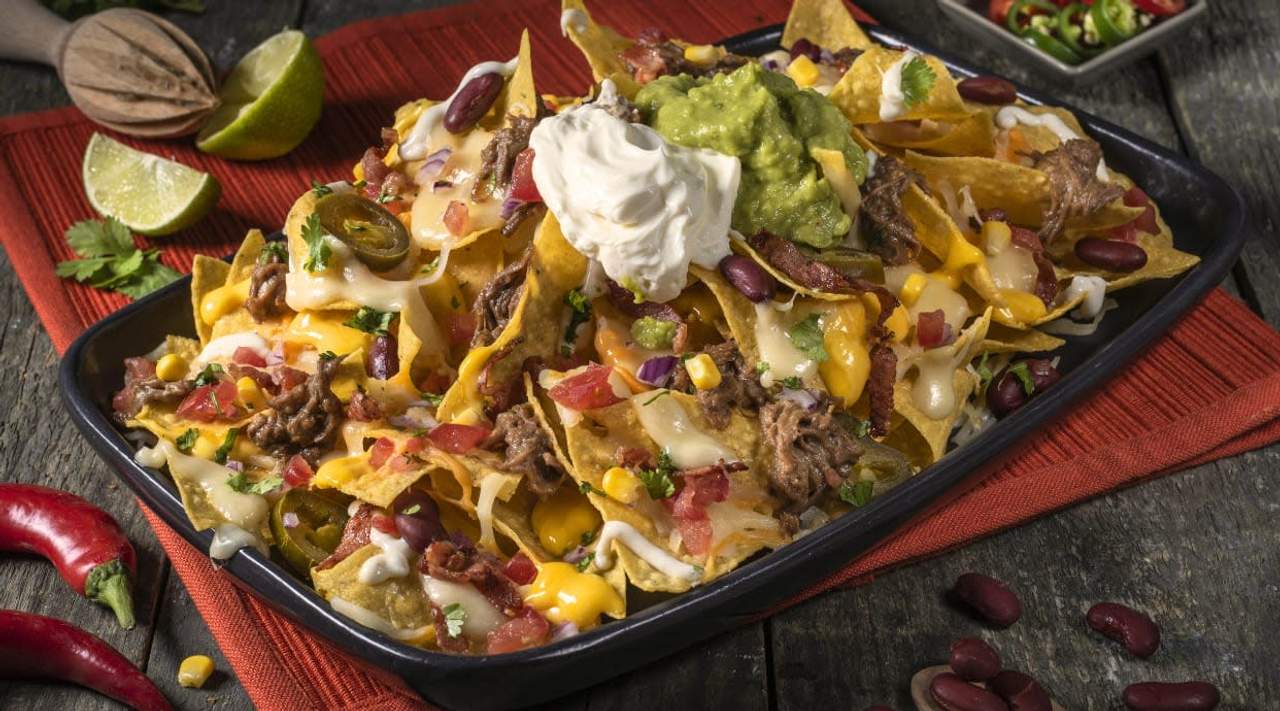 Con pollo, chili con carne, jalapeños, guacamole, nata ácida, salsa de queso cheddar, pico de gallo y queso fundido.
