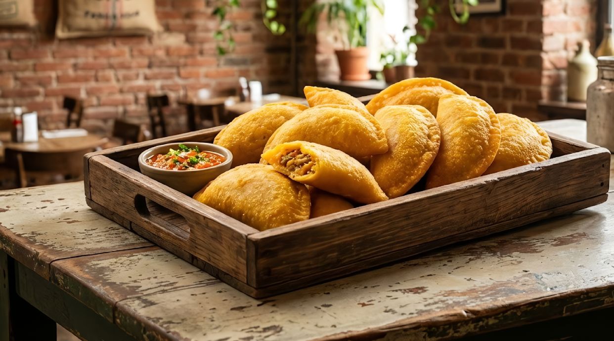 Empanada rellena de queso fresco crujiente de bacon y maiz dulce