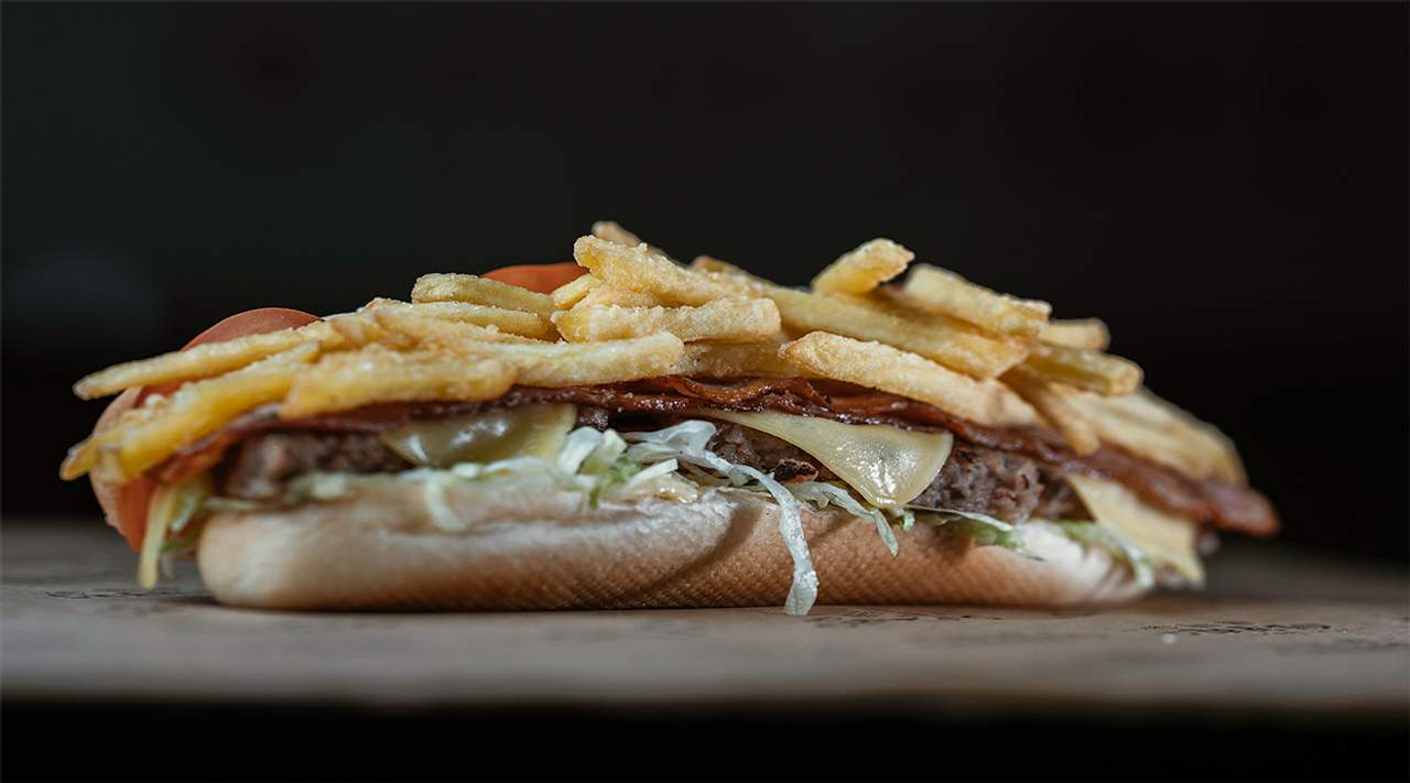 Hamburguesa, Bacó, Formatge, Enciam, Tomàquet, Patates Fregides i Maionesa.