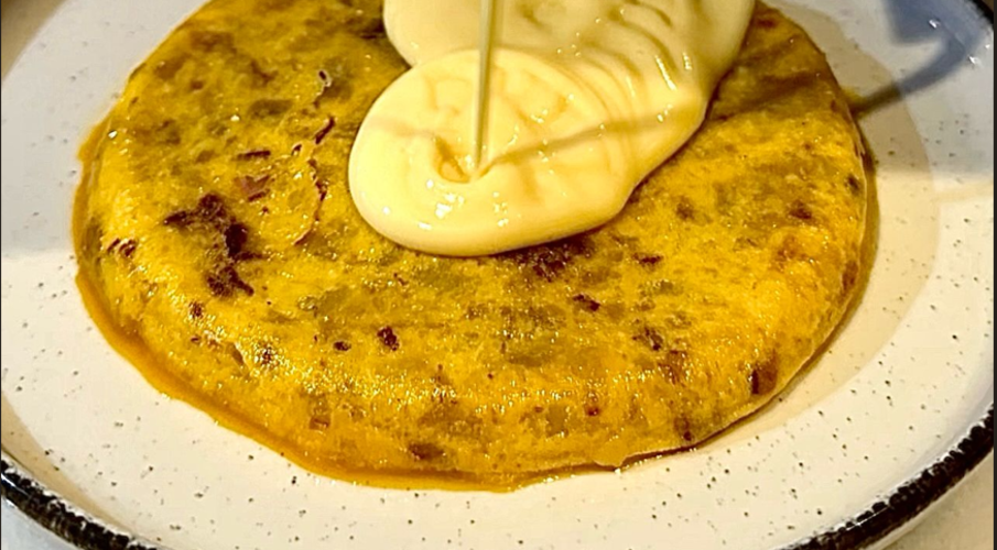 Tortilla clasica española versión carbonara. Guaccialle y pecorino romano. (huevo pasteurizado)